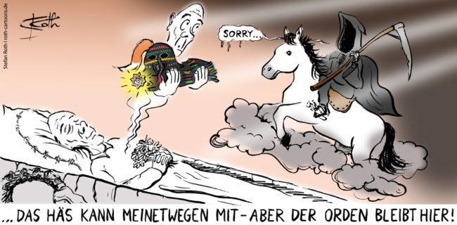 Fastnacht ist eine ernste Sache Die Narrenzunft Überlingen hat ihre Prinzipien, zu Recht. Im Internethandel haben die von ihr verliehenen Orden nichts zu suchen. Und wie der Begriff schon sagt: Die Orden werden „verliehen“, nicht verschenkt. Mit dem Ableben des Narrs ist schluss mit lustig. Mehr darüber in Südkurier online. Suchworte: Sensenmann,…