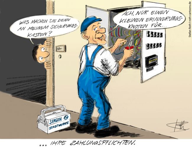 Erschienen im Südkurier Konstanz, Lokalteil Singen am 1. September 2012 Einigen säumigen Zahlern wird per Plombe mittlerweile der Strom abgedreht. Hier ist der Link zum Artikel bei Südkurier online. Suchworte: Singen, Stadtwerke, Plombe, Stromkosten, Techniker, Handwerker